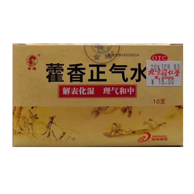 金雞藿香正氣水10ml*10支/盒泄瀉嘔吐頭痛昏重外感風寒感冒